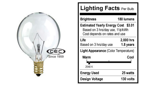 25G12/130V | G12 130V 25W 0.19A E12 CLEAR | G-12 | Candelabra Screw (E12) | C-2V | 130 | 25 |